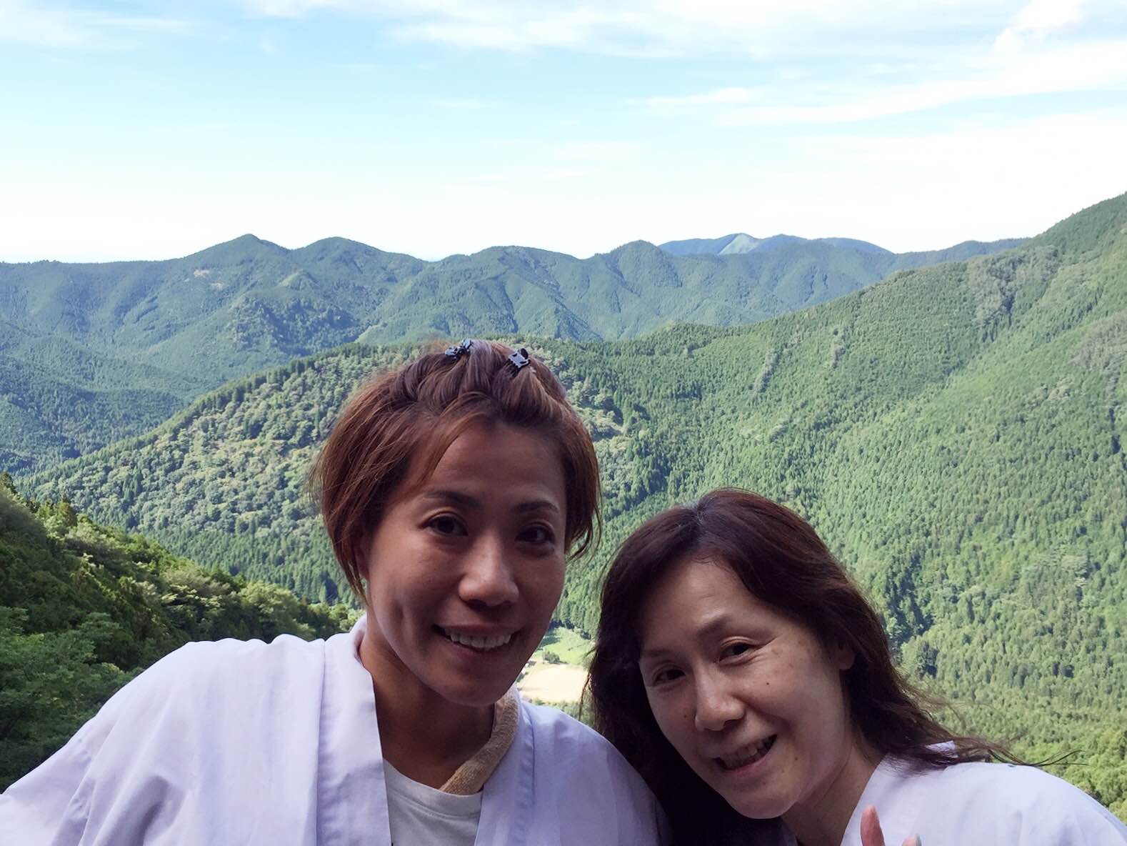 またあの怖いはしごをおりて、ご神山をバックににっこり(^◇^)