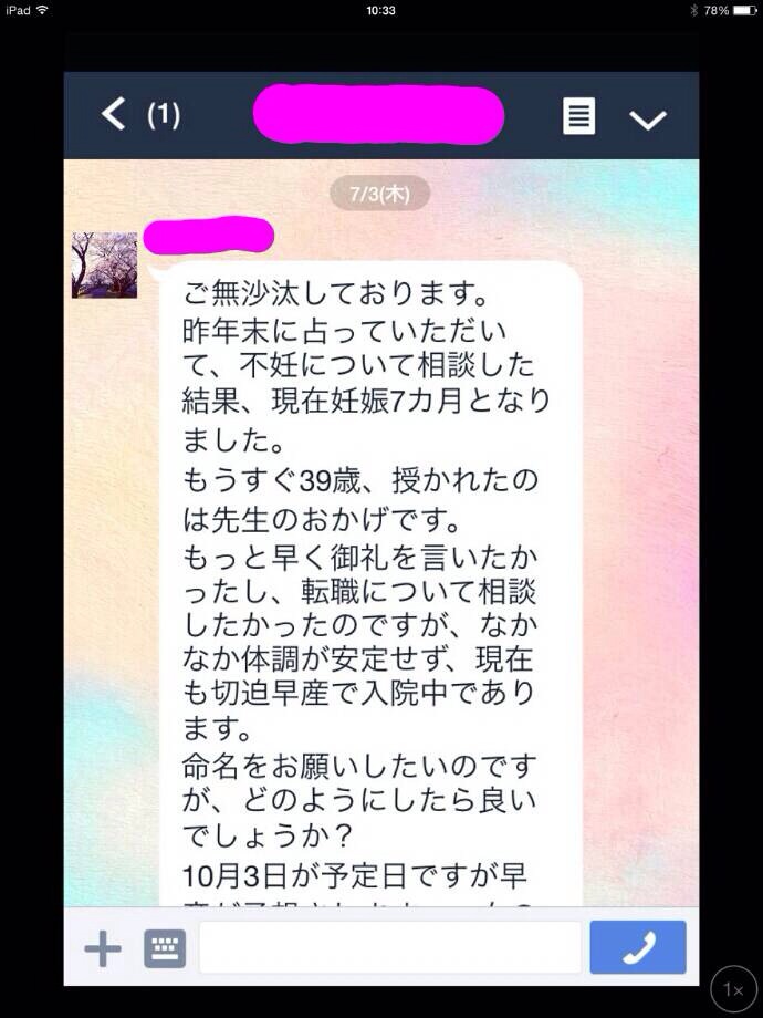 昨年、不妊で悩んでおられ お子様がほしい、妊娠したいというご相談でお越しになられた方から☆先生~妊娠しました!!☆という、とっても嬉しいご報告がありました