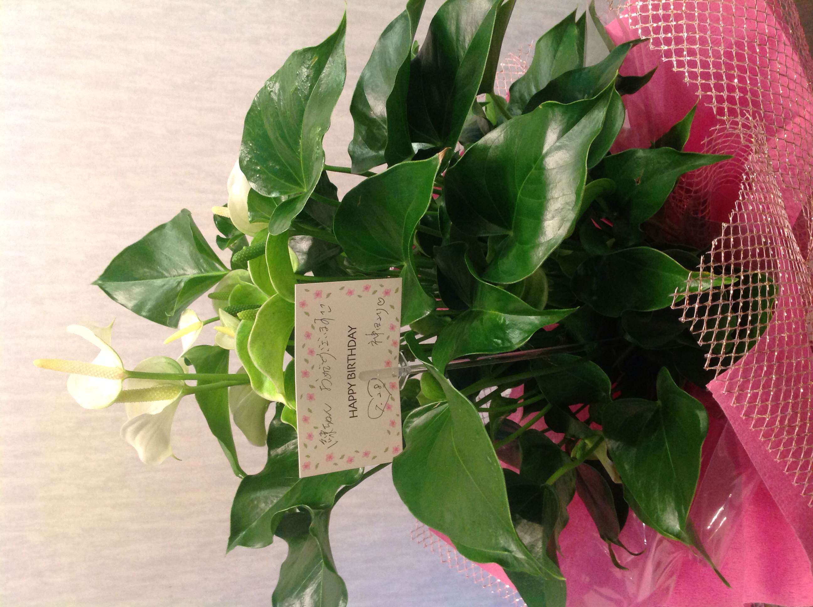 その久しぶりのお客様の接客中に素敵な届け物が。誕生日祝いのお花が届いたんです