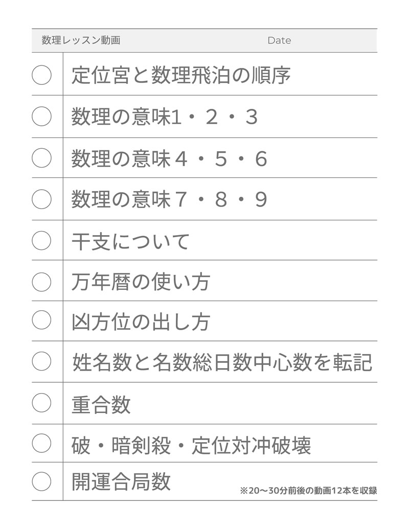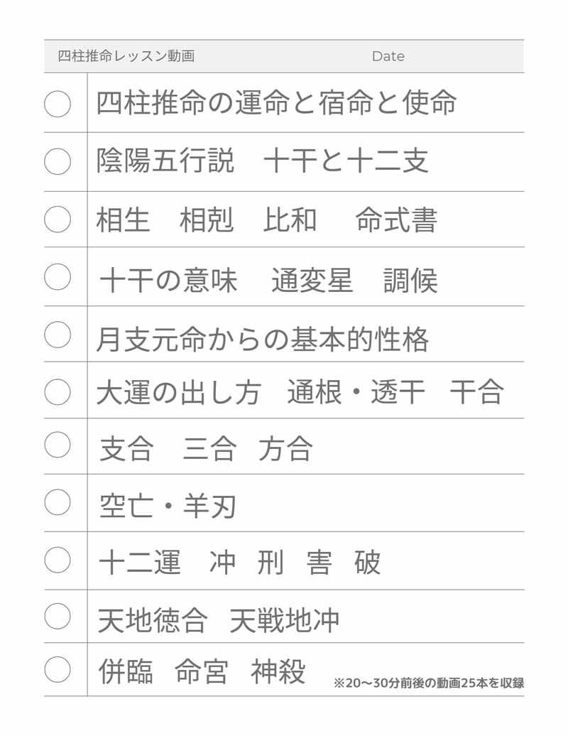 四柱推命レッスン動画では、プロになるために必須の基礎学を25項目に分け学んでゆきます。